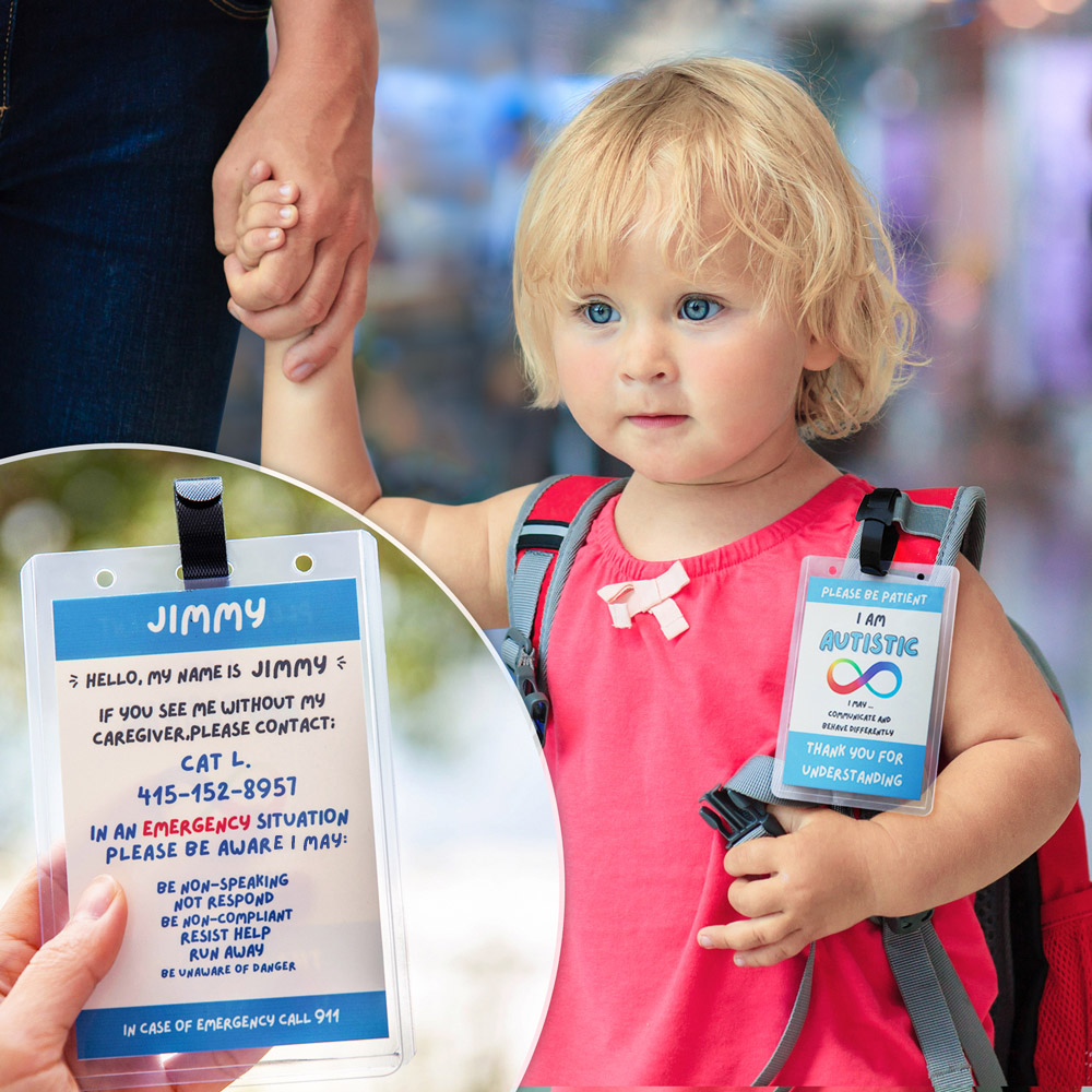 Personalized Autism Card for Communication - If you are a parent or caregiver of a child with autism, this Autism Medical Alert Sign for strollers/mobility devices is the perfect way to keep your loved one safe and secure. The bright colors, bold lettering, and unique design are sure to make your stroller stand out from the crowd. The simple design can help alert medical professionals of the child's needs in case of an emergency.