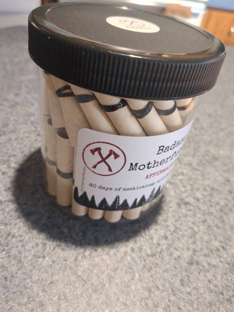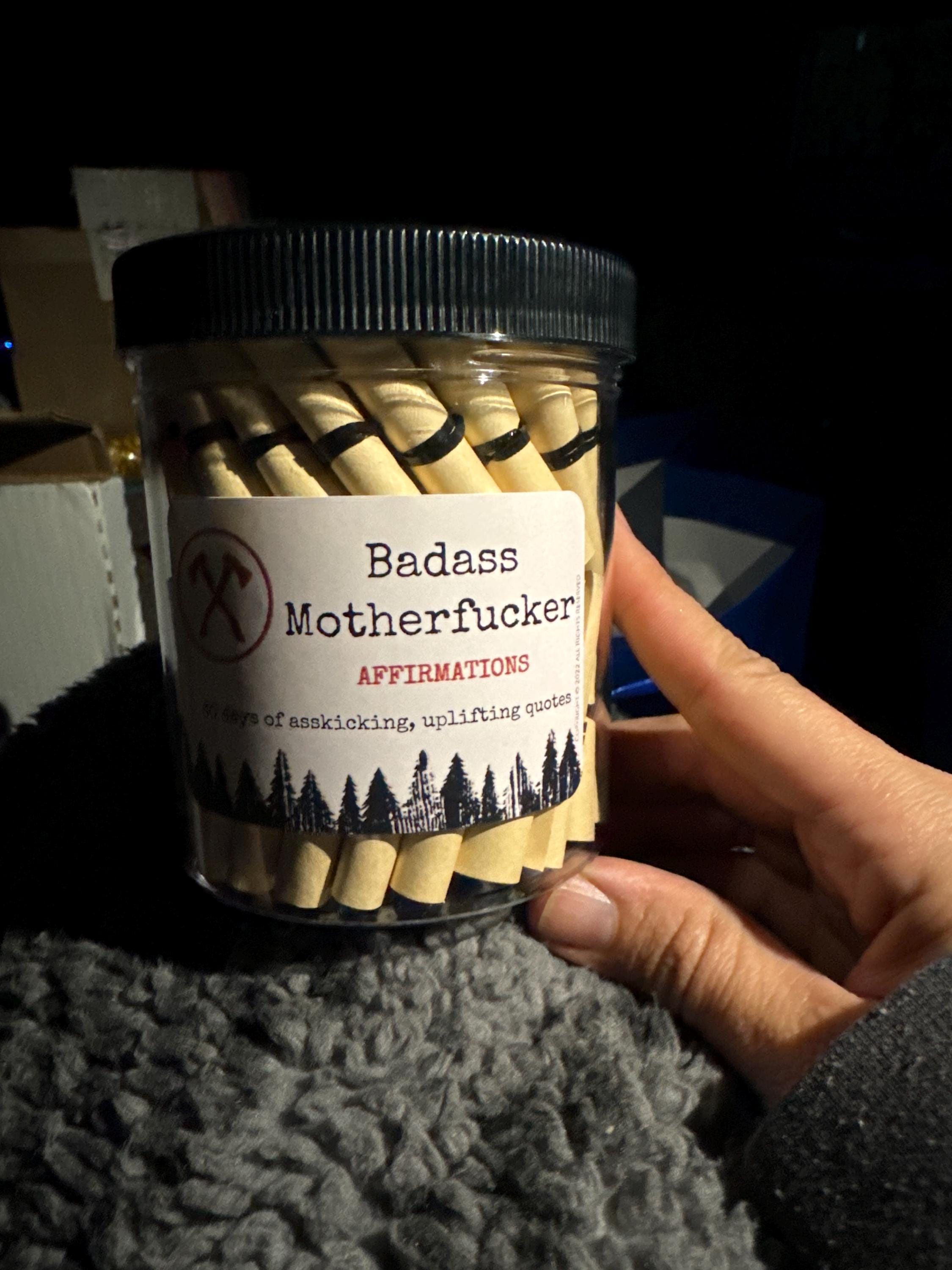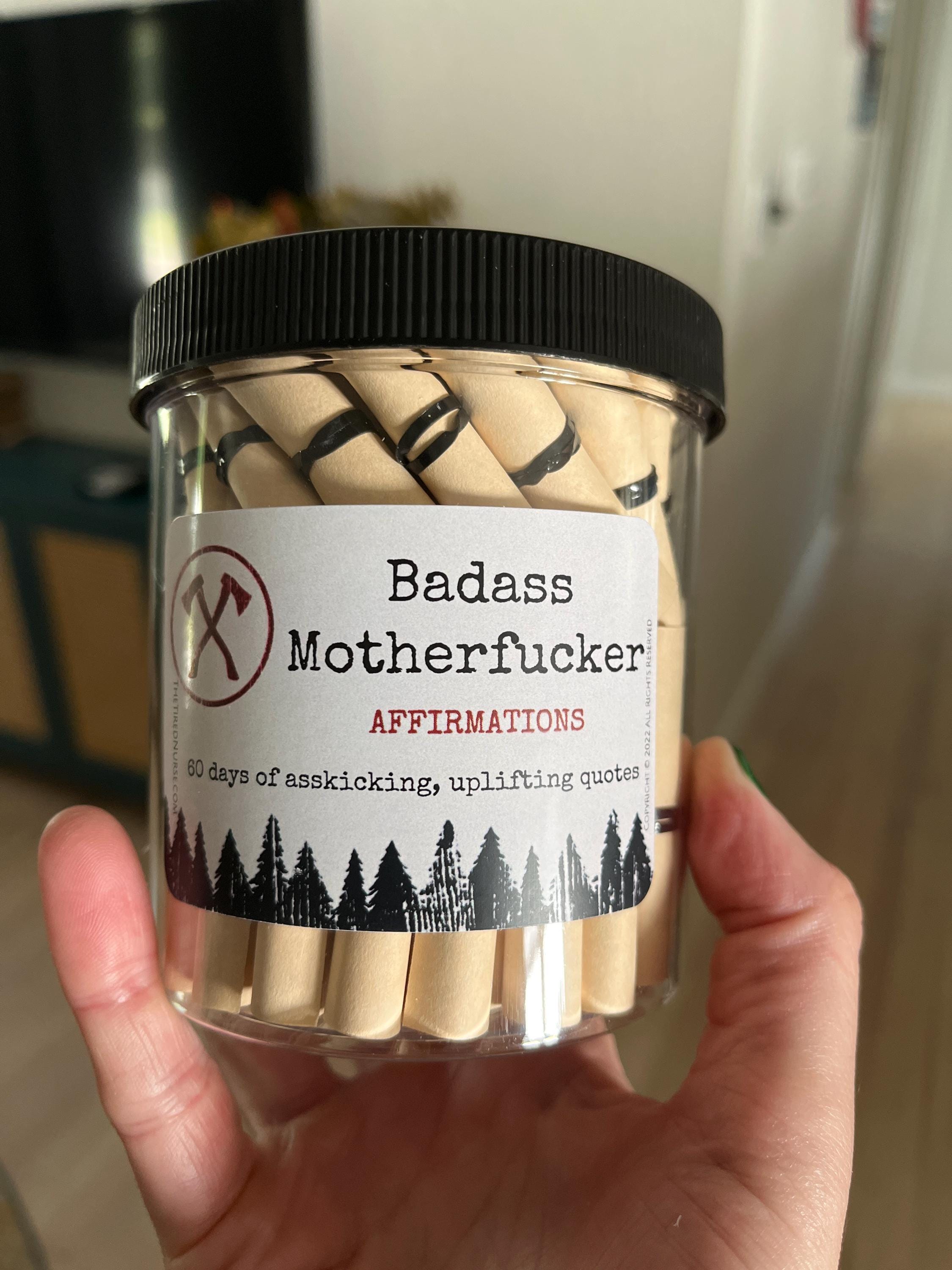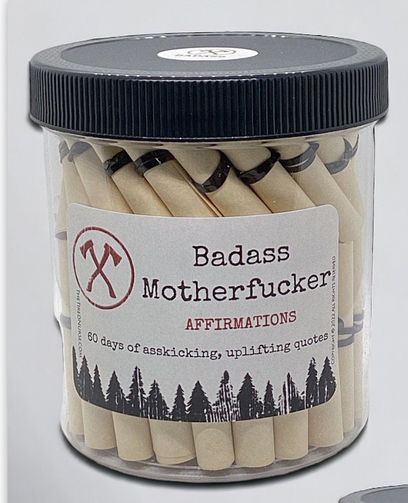 Badass Motherfucker Affirmation Jar: The ultimate source of irrefutable empowerment and confidence for men who own their power and embrace their inner badass! This jar contains 60 carefully selected hardcore affirmations designed to motivate, uplift, and kick some serious ass on a daily basis.