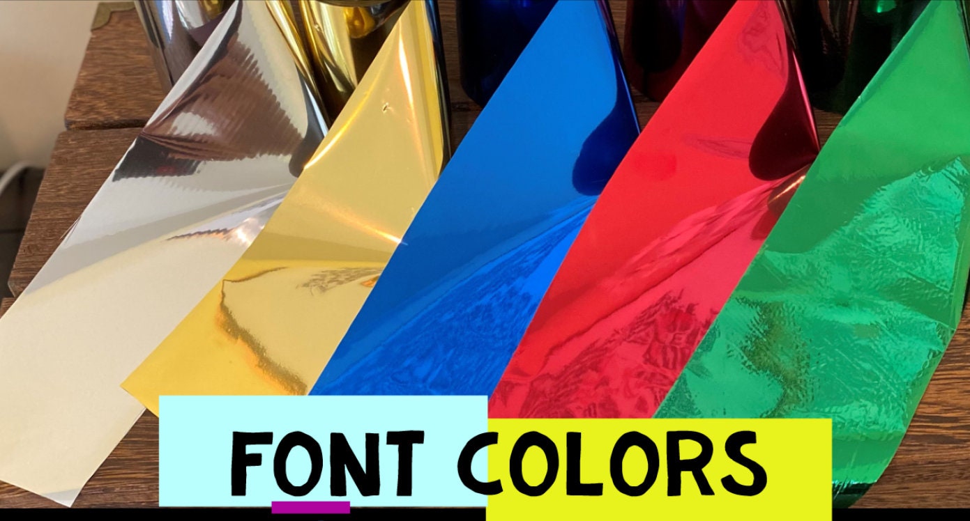 Personalization will be in ALL CAPS Helvetica font in a shiny metallic color of your choosing - font colors include Gold, Silver, Red, Blue, and Green.