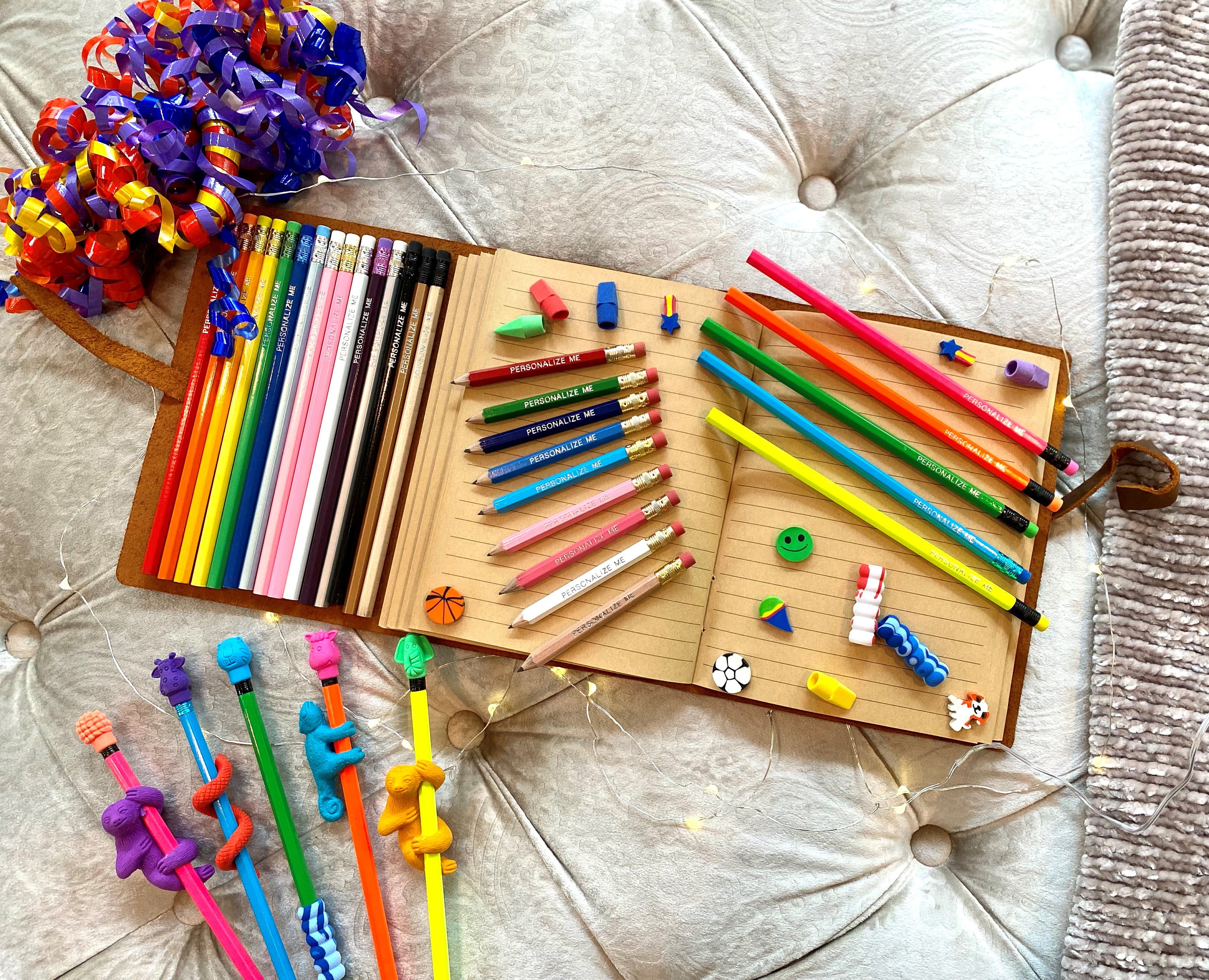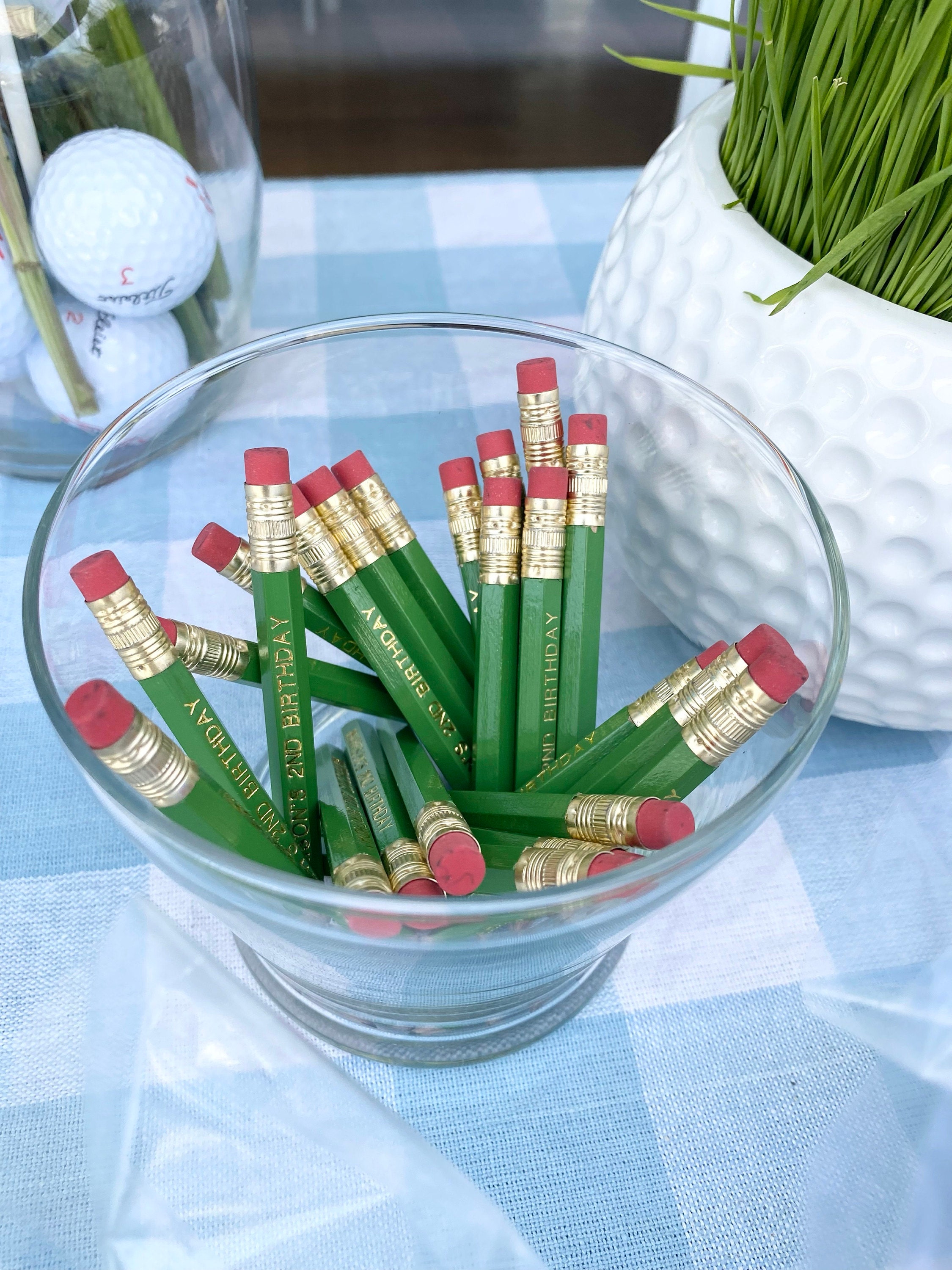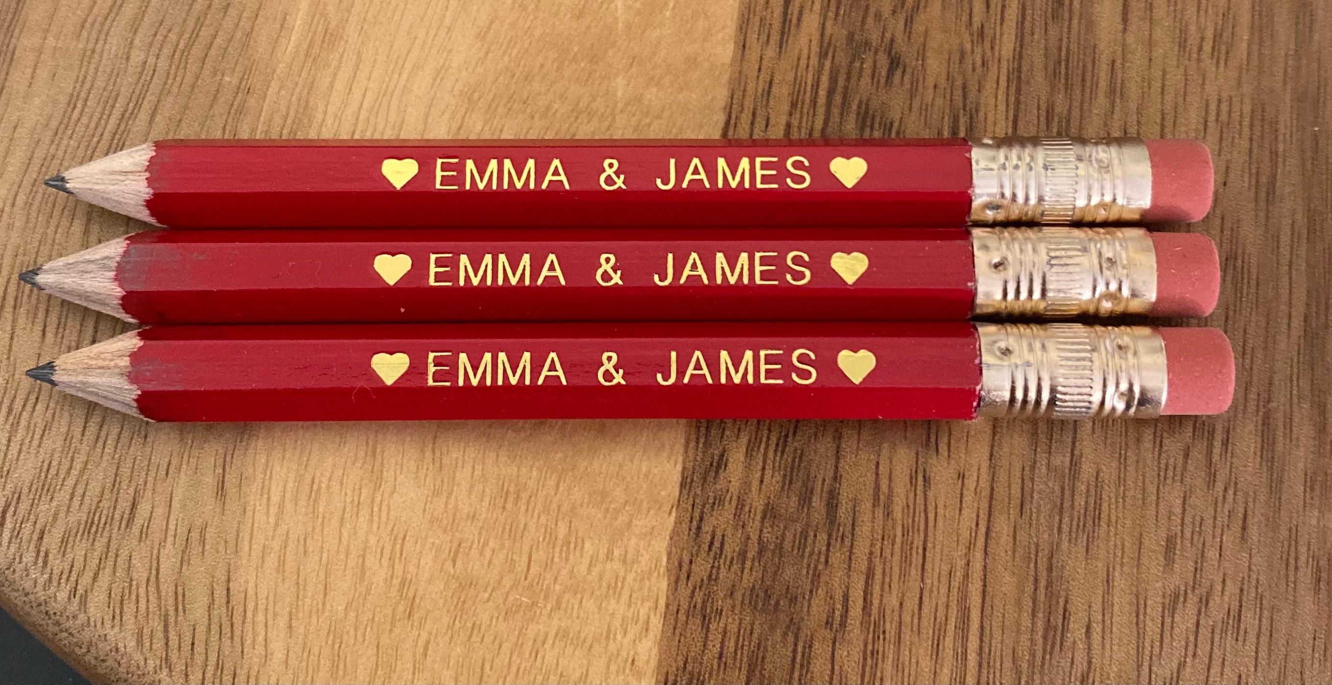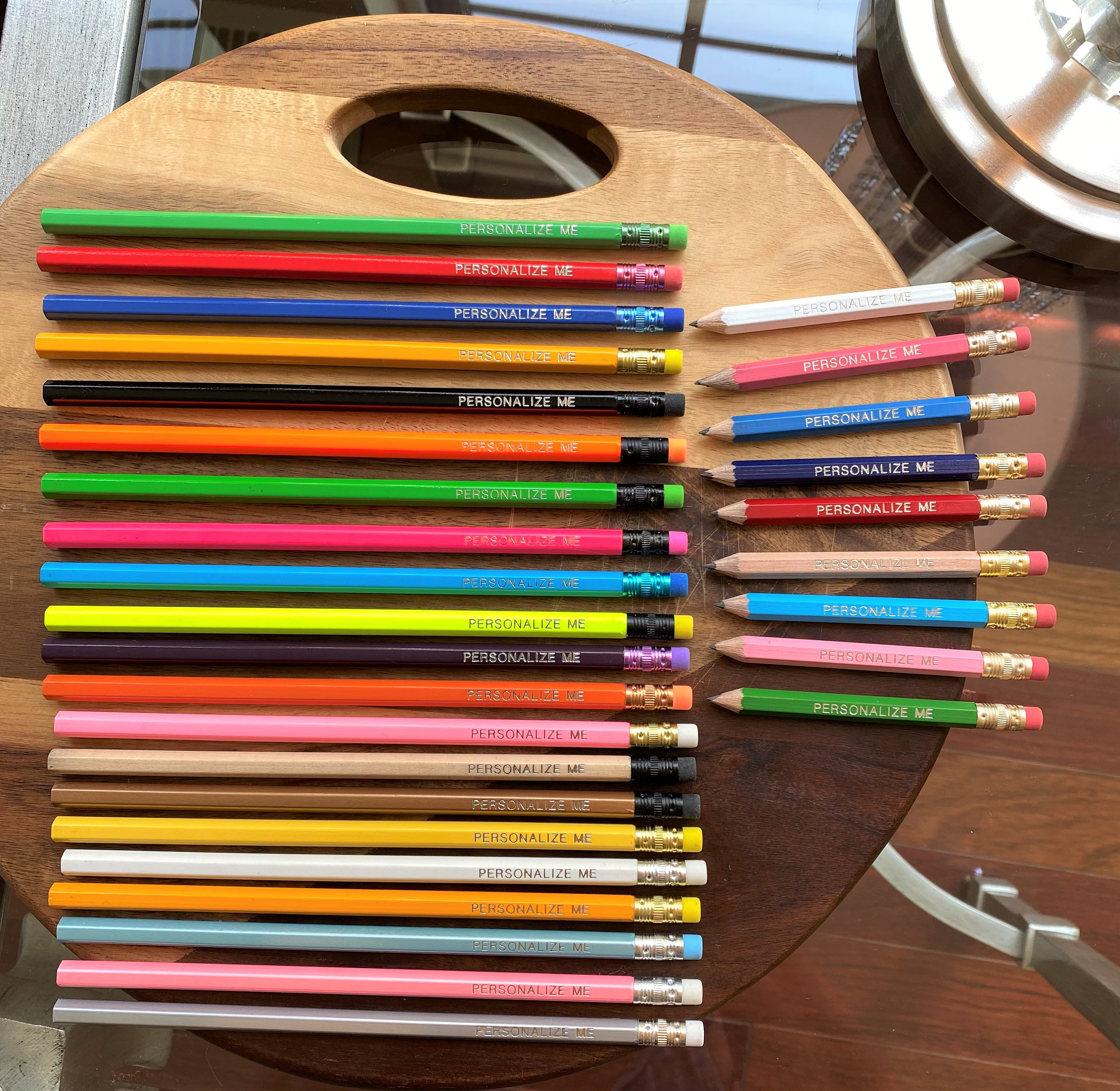 Pencils are hexagon shaped, sharpen easily, and are standard sized. Personalization can include up to 30 characters including spaces and punctuation.