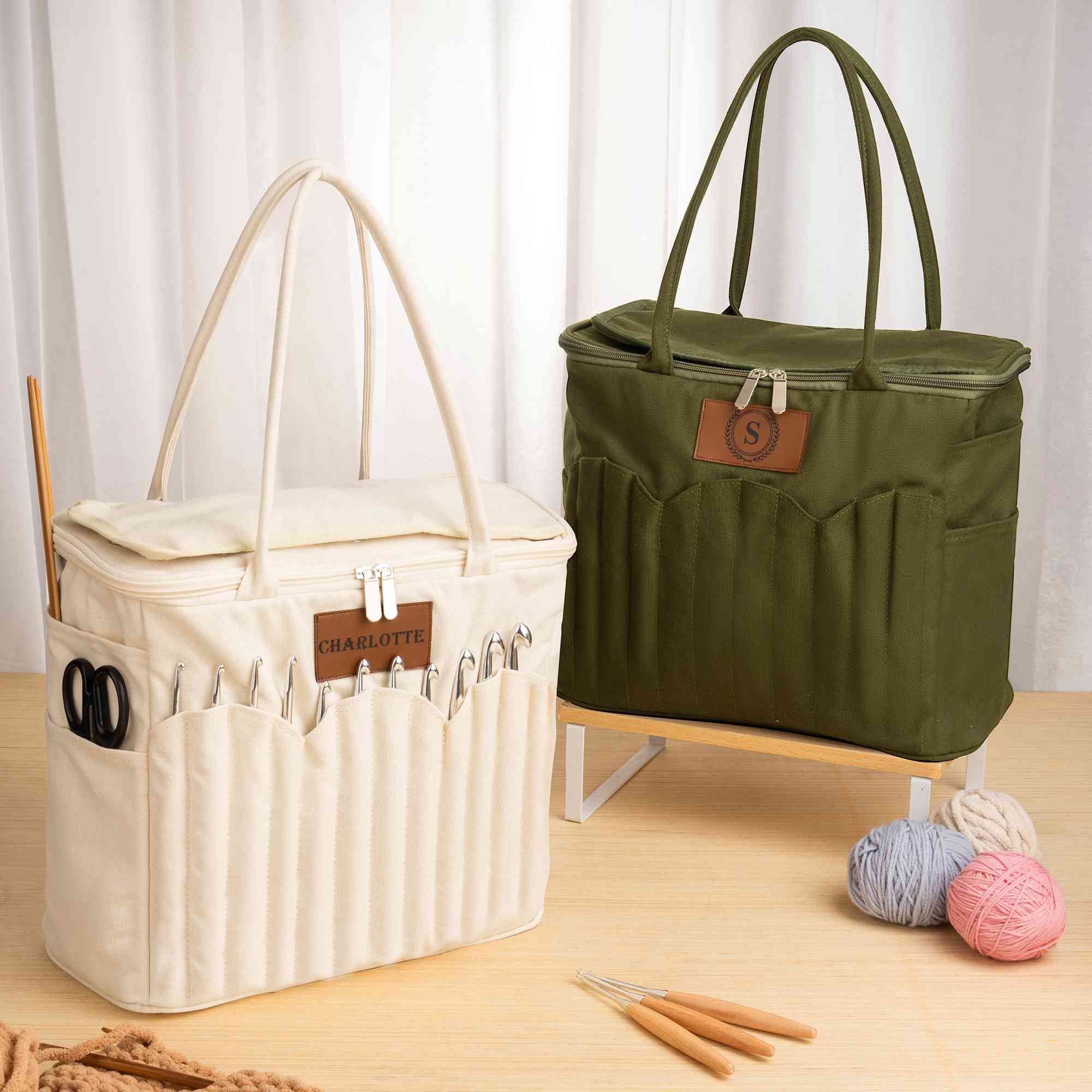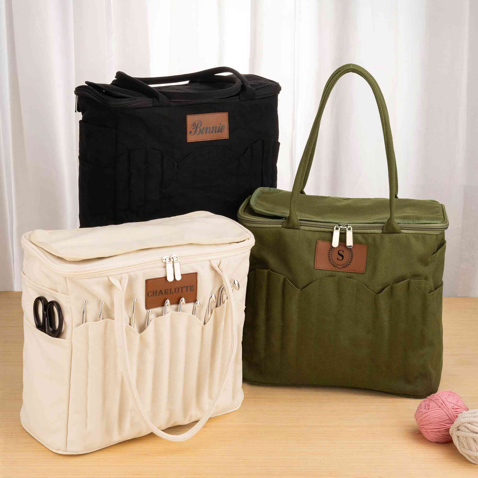 Personalized - This custom initials canvas knitting bag allows you to personalize it with your initials, adding a unique touch that reflects your style. This customization makes it a thoughtful gift for knitting enthusiasts, celebrating their passion for crafting.