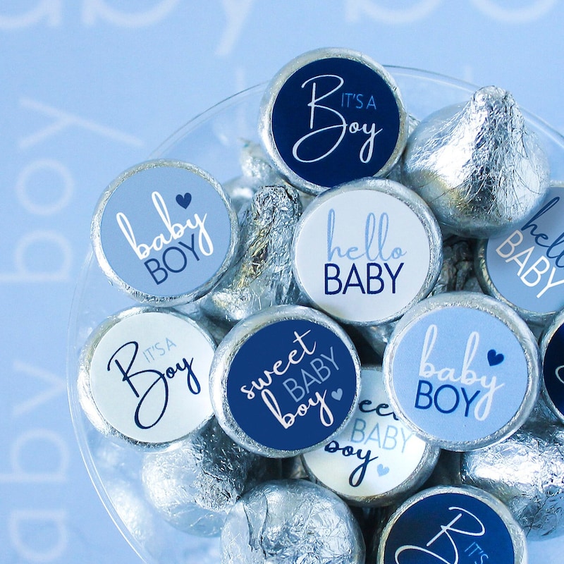 It's a Boy Blue Chocolate Kisses Candy Favor Stickers - 180 Labels, Sweet Baby Boy Baby Shower Labels