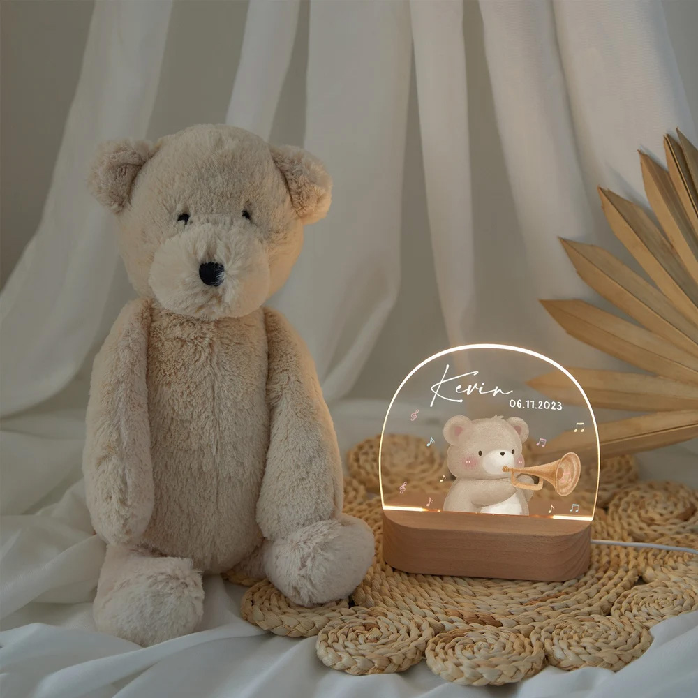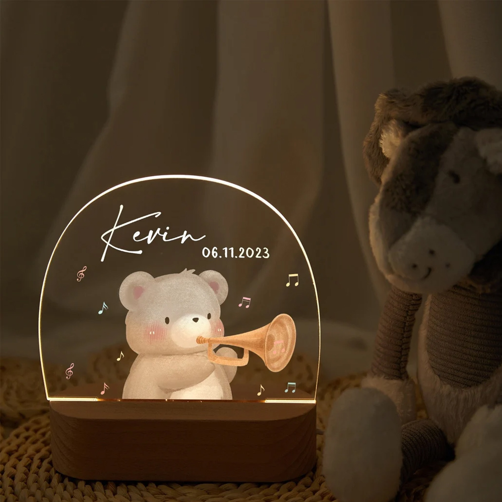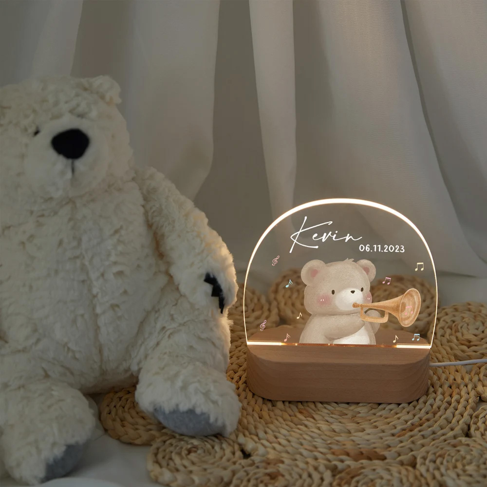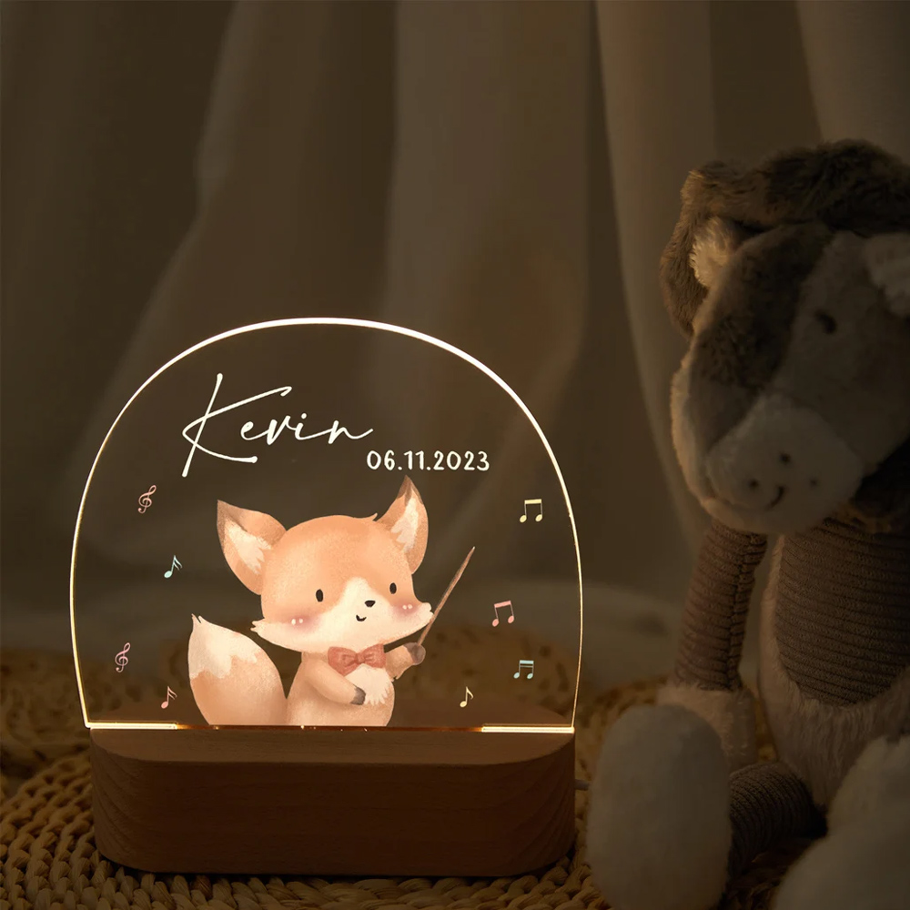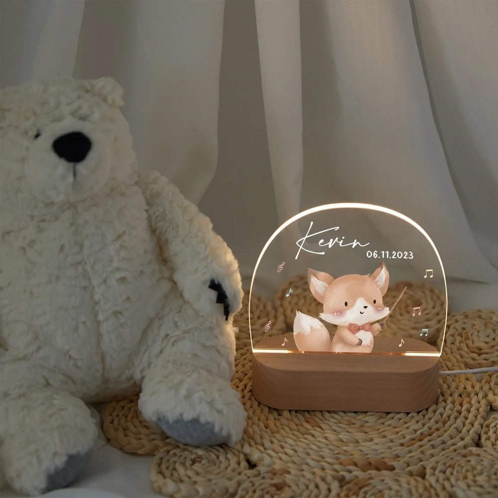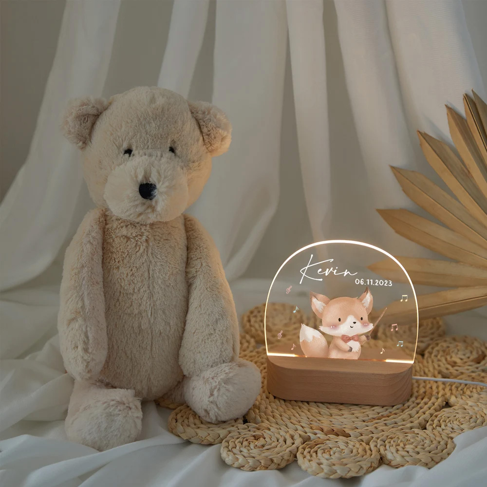 The 'Cute Baby Personalised Night Light' is a heartwarming addition to any nursery or child's room. Featuring charming baby animal characters, this adorable night light can be customized with your baby's name and birth information, making it a truly special keepsake. Made from high-quality materials, it emits a soft glow to provide comfort and security at night. The design is both adorable and soothing, perfect for creating a calming bedtime atmosphere. Whether as a baby shower gift or as a personalized decoration for your home, this personalized night light is sure to become a treasured item marking precious moments in your child's early years.