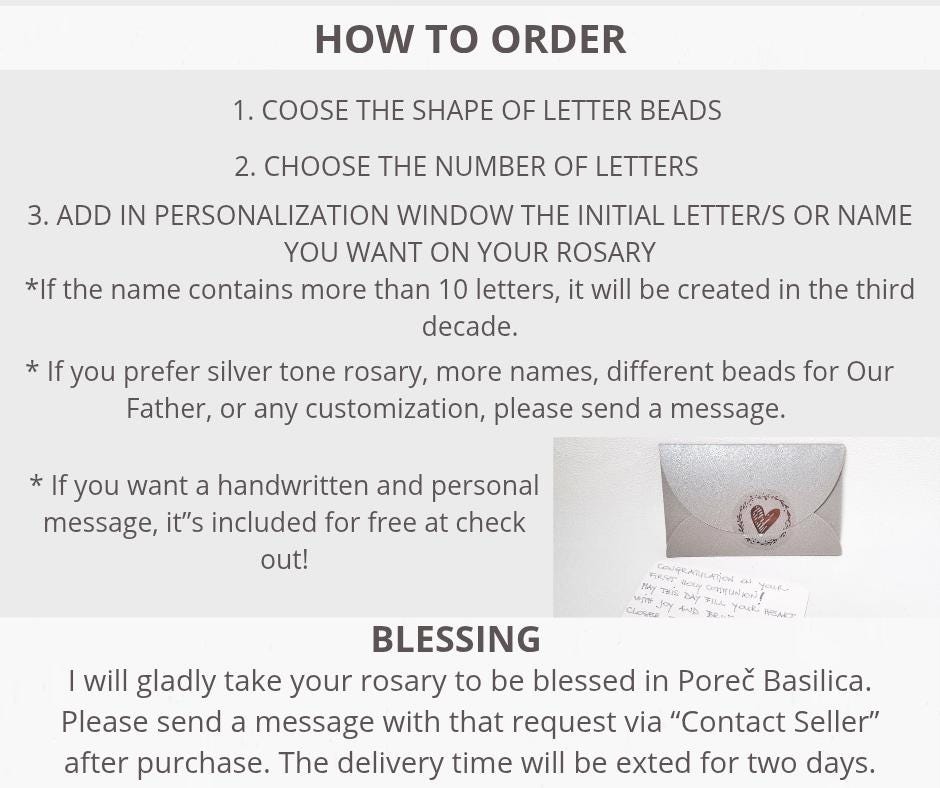 Your rosary can be blessed by our Roman Catholic priests at the Poreč Cathedral. If you would like me to do this for you, I will need to extend the delivery time by two days. Please let me know via message or in the personalization window.