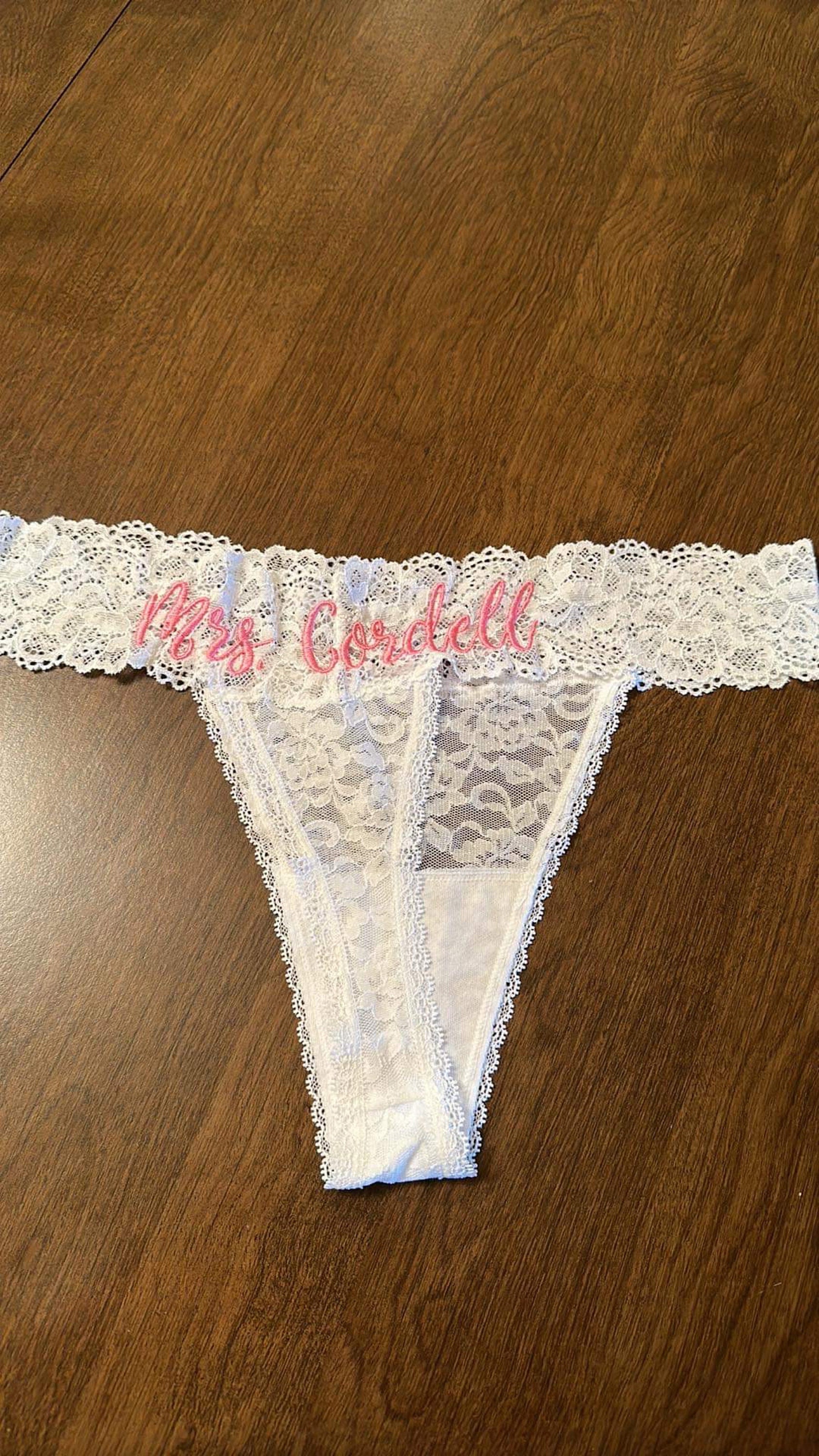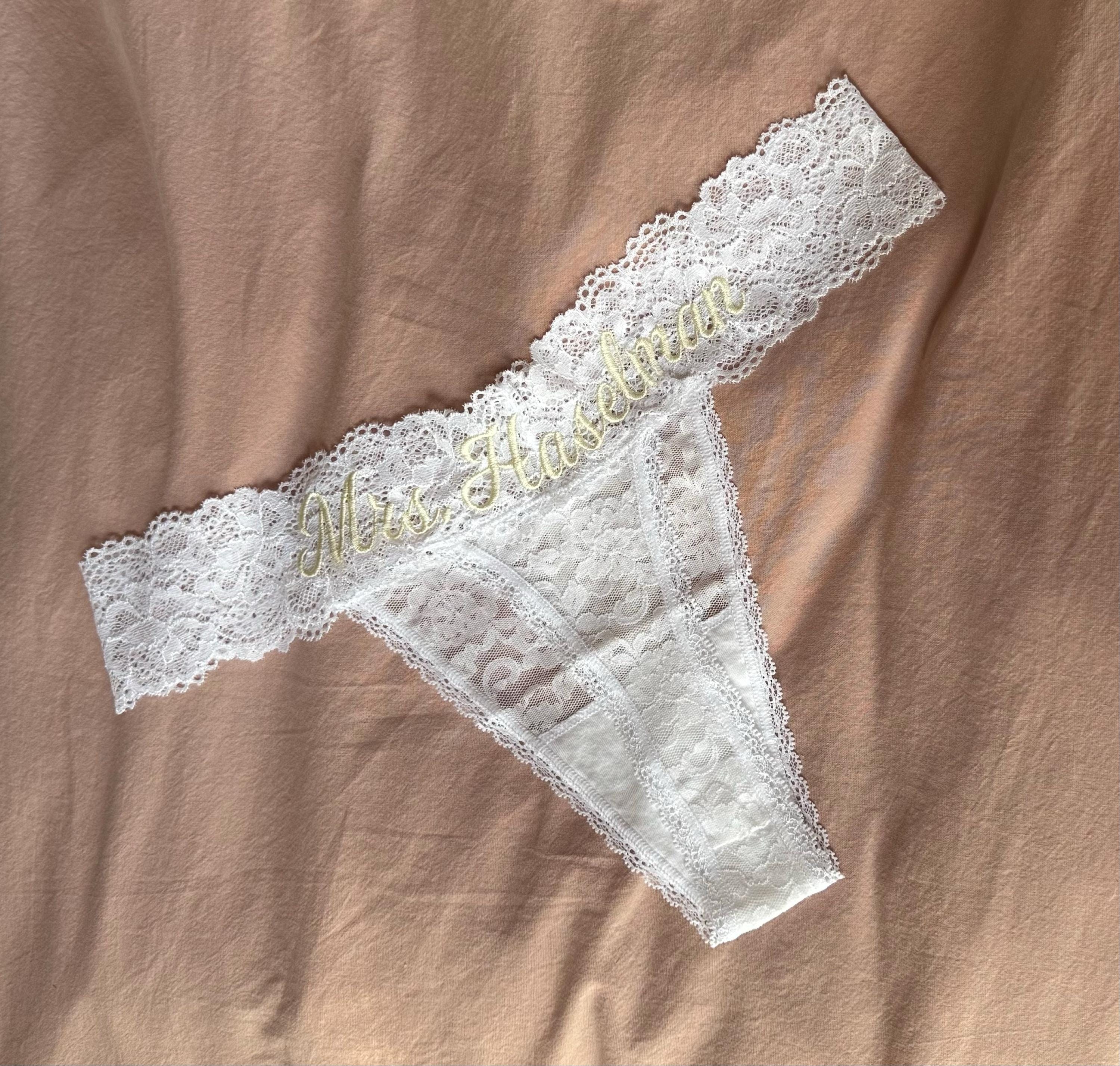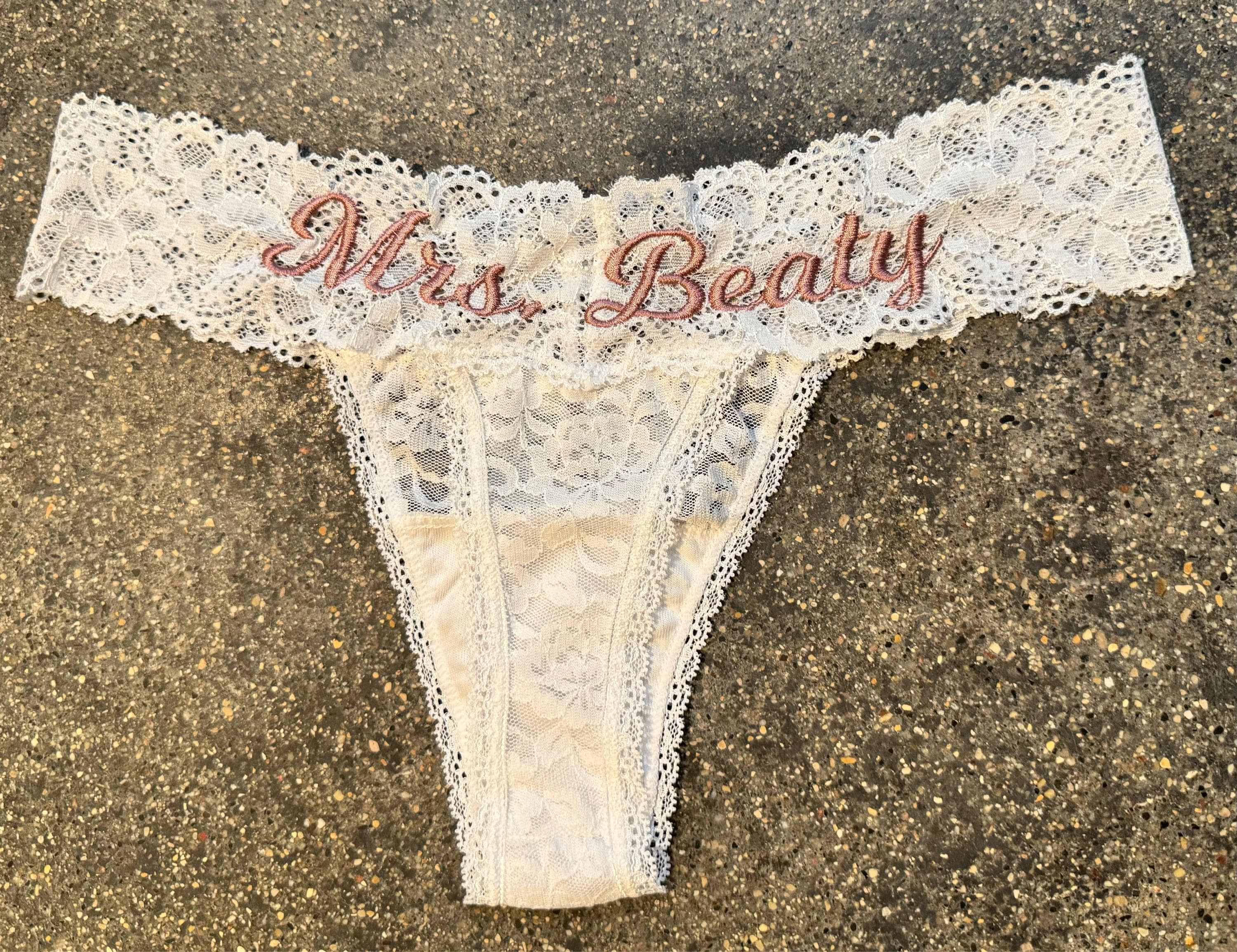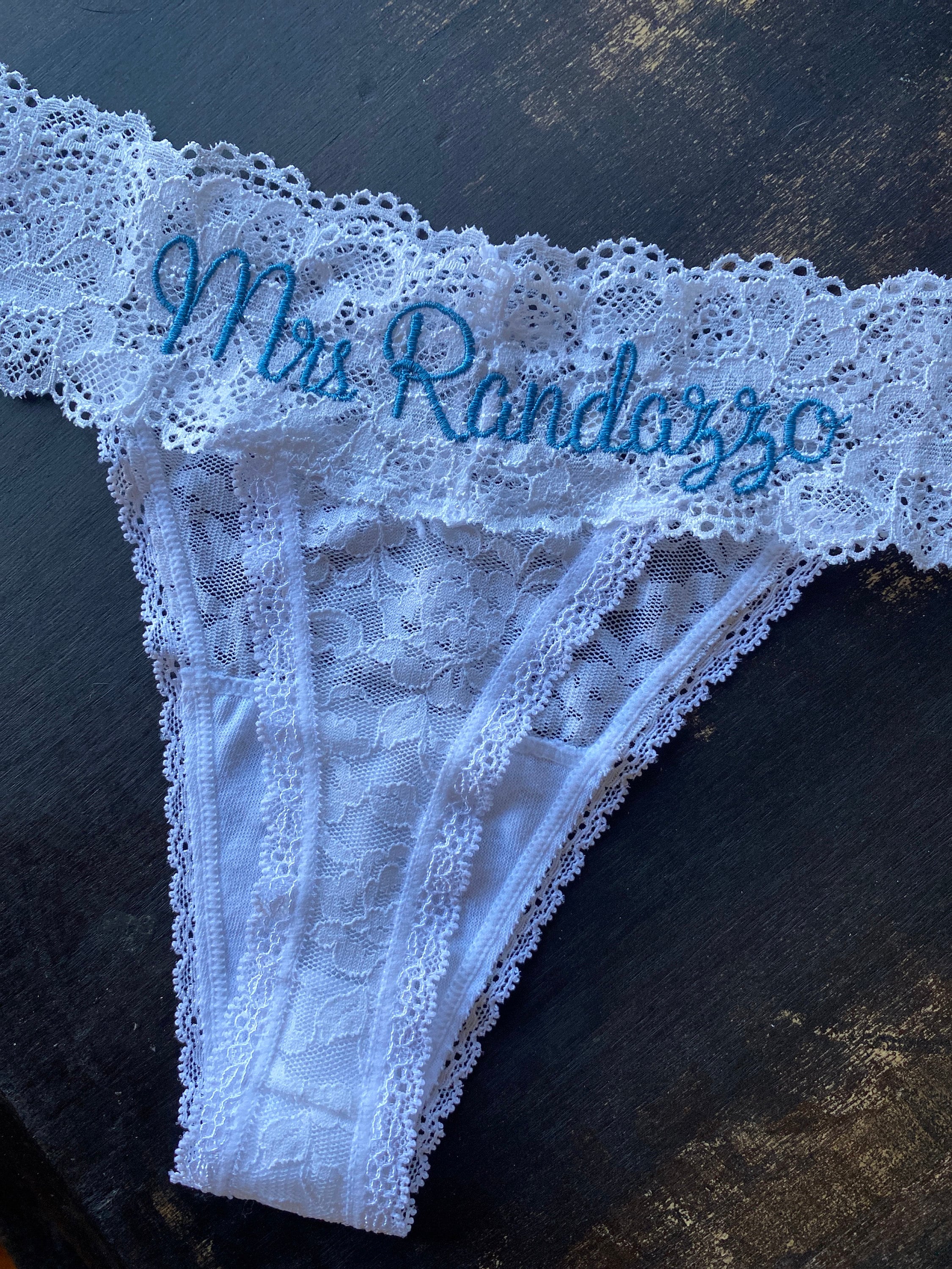 Personalized White Lace Bridal Thong
