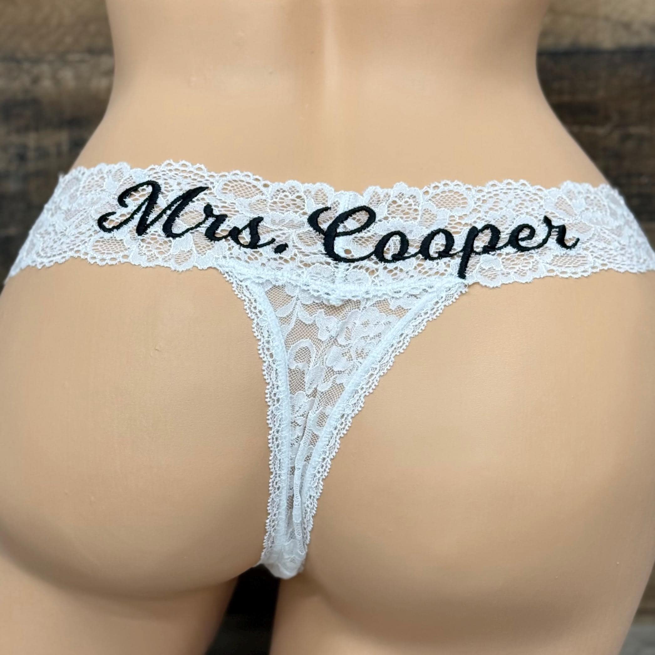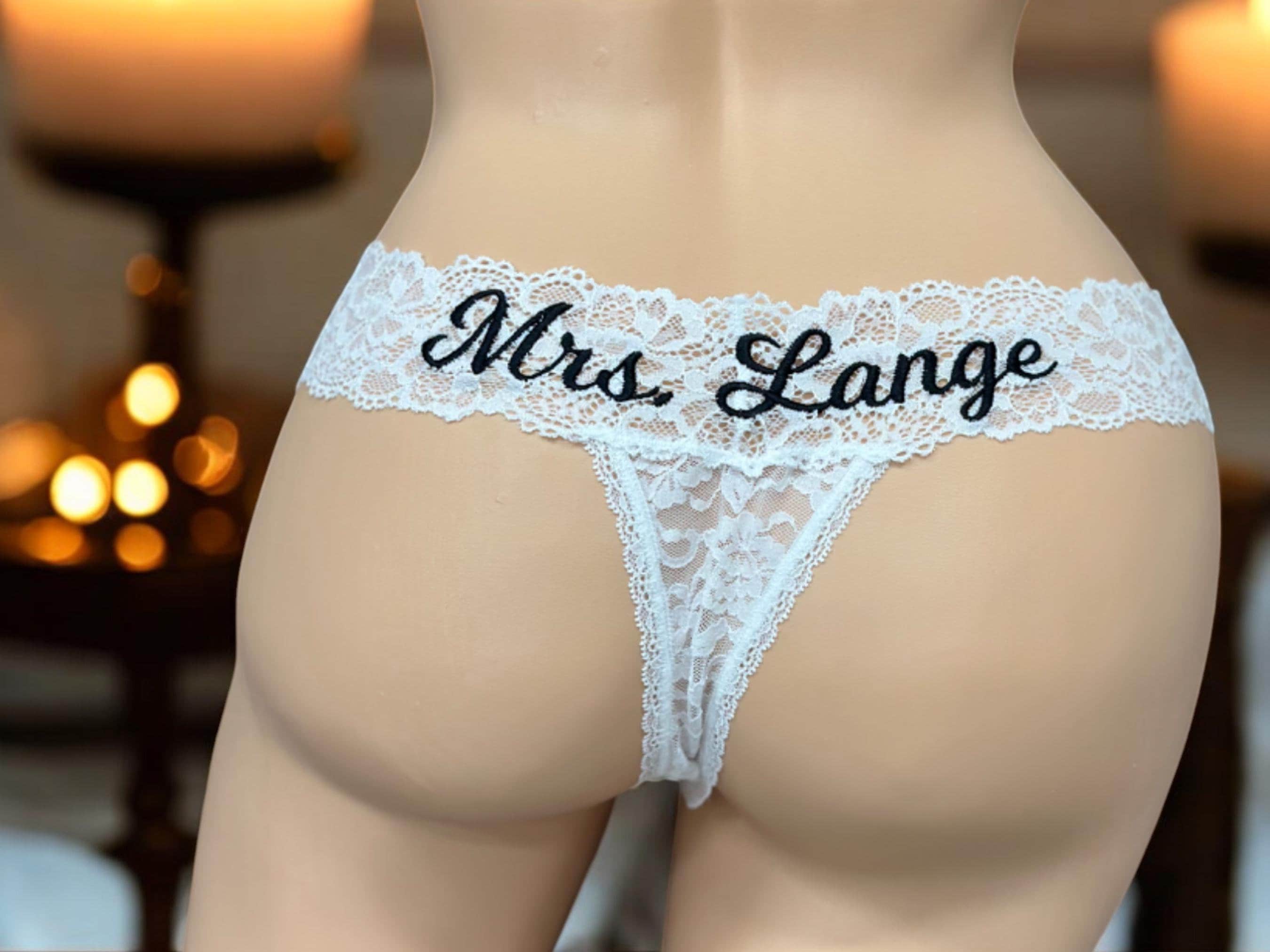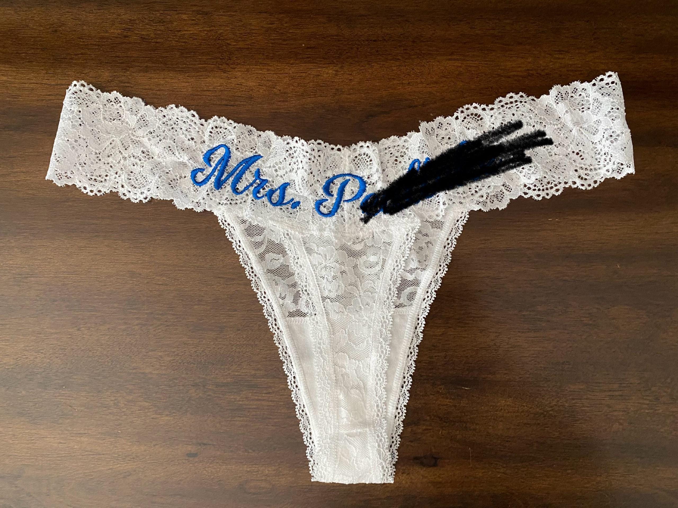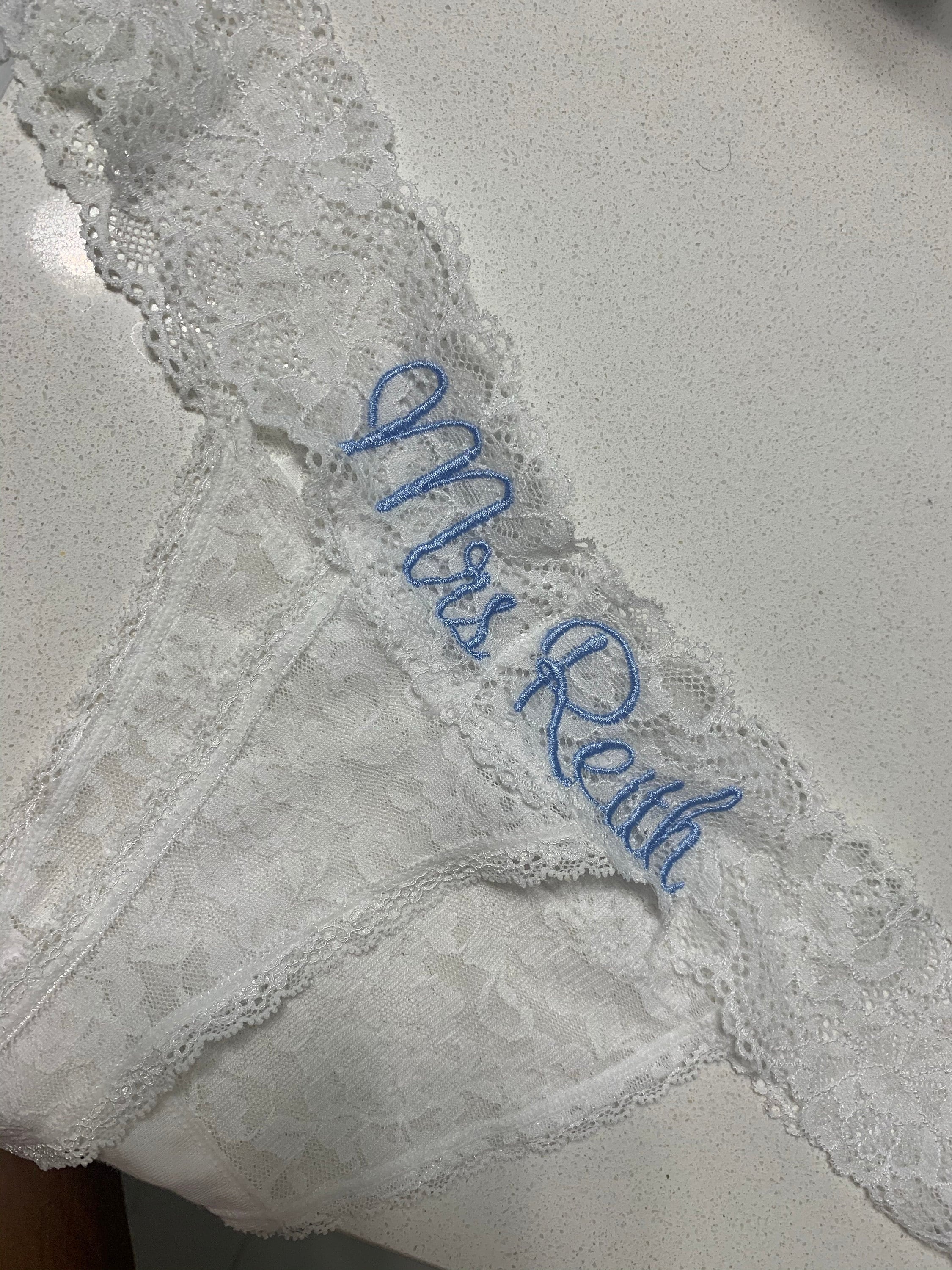 Personalized White Lace Bridal Thong