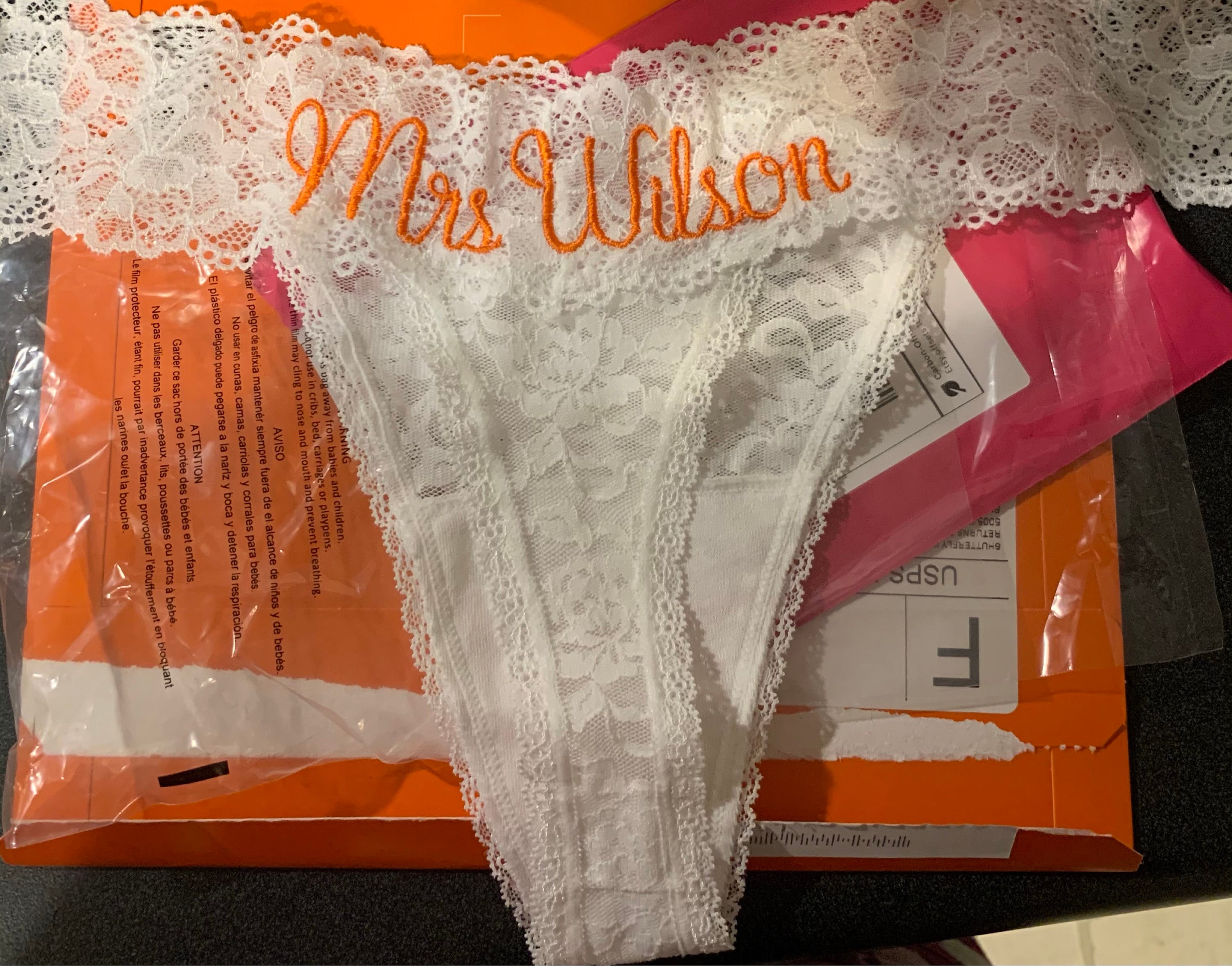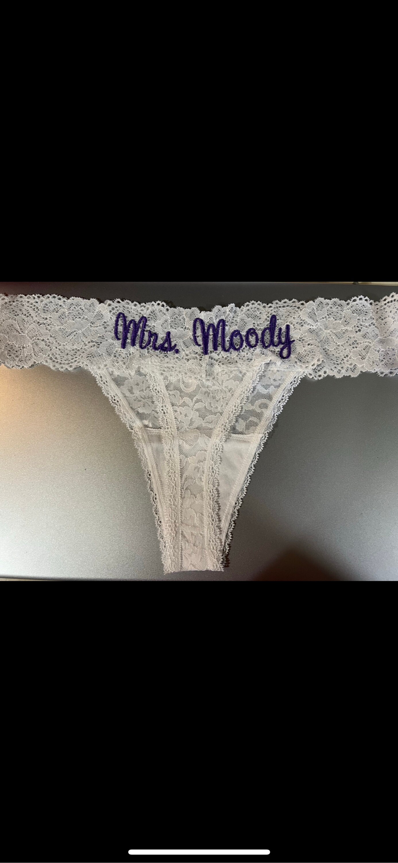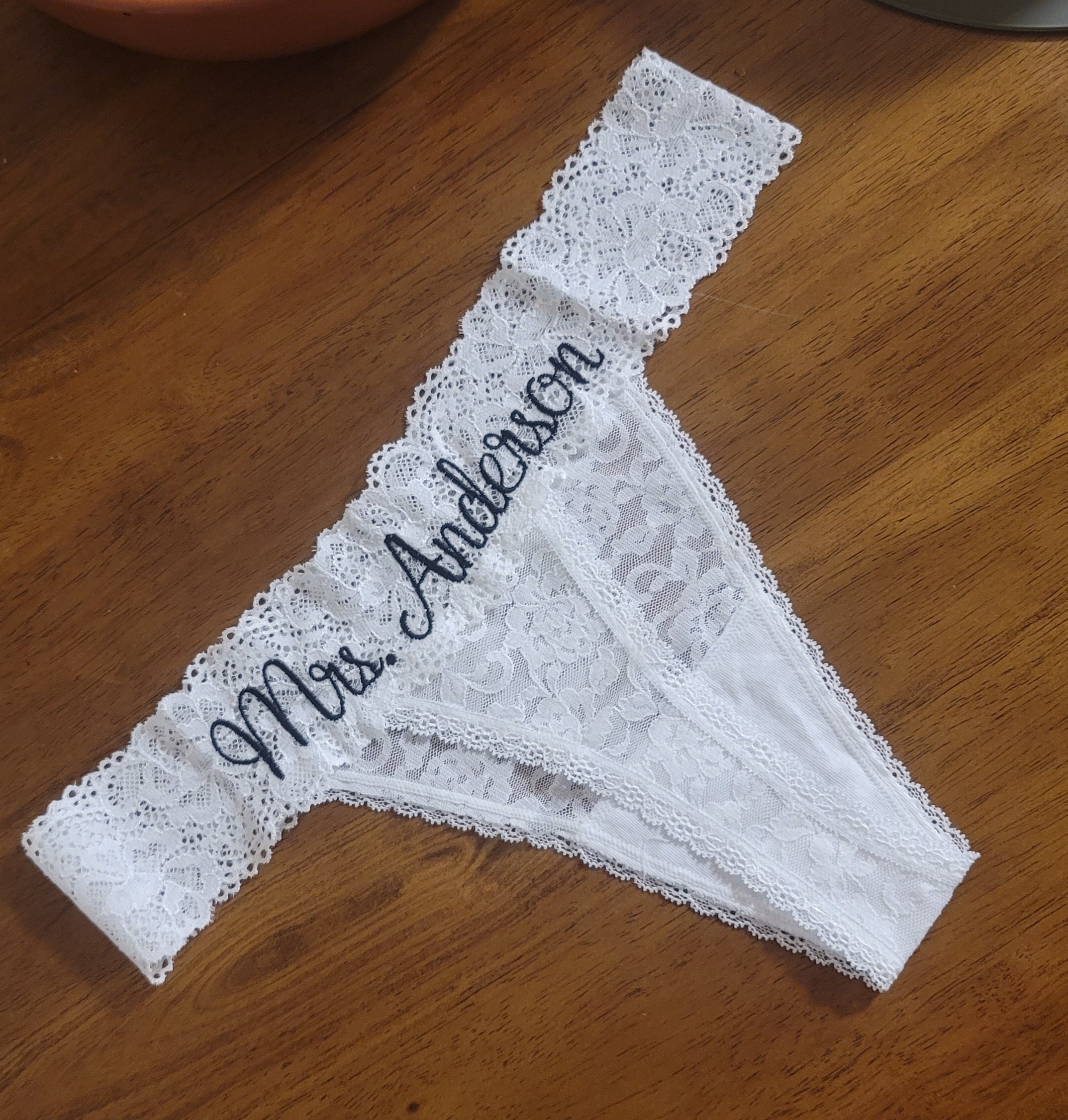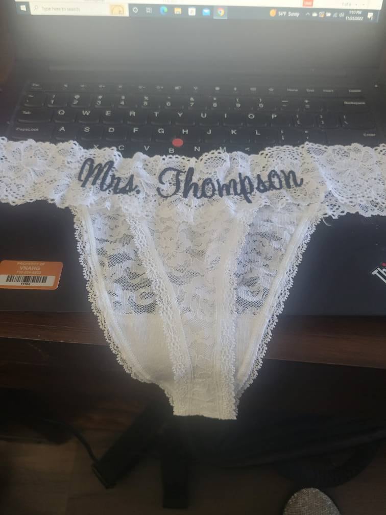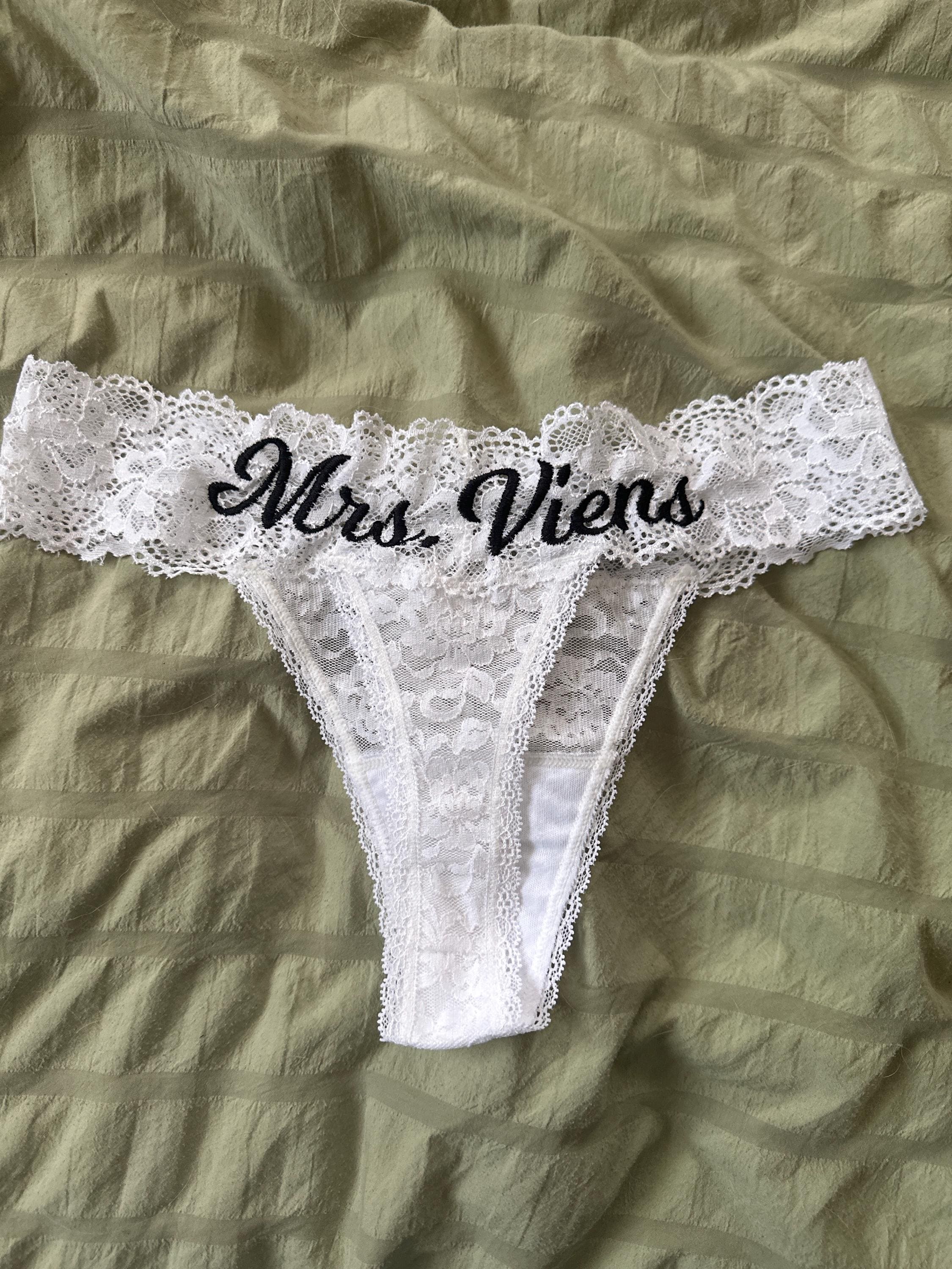Personalized White Lace Bridal Thong