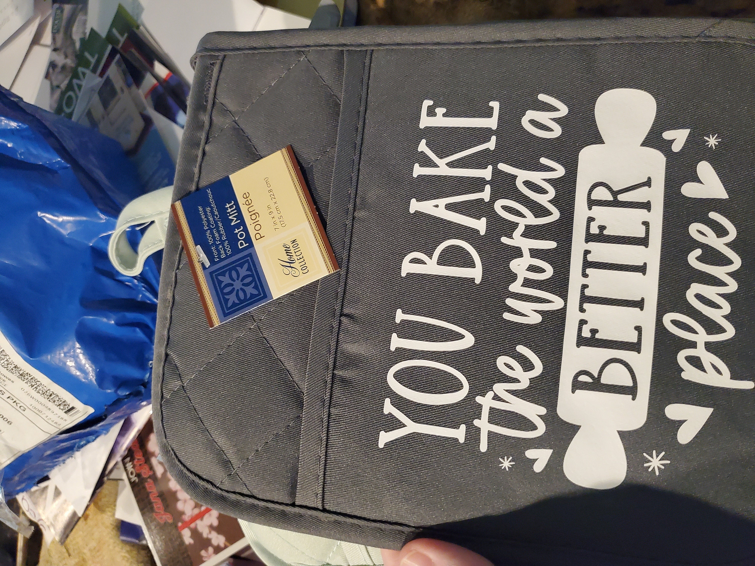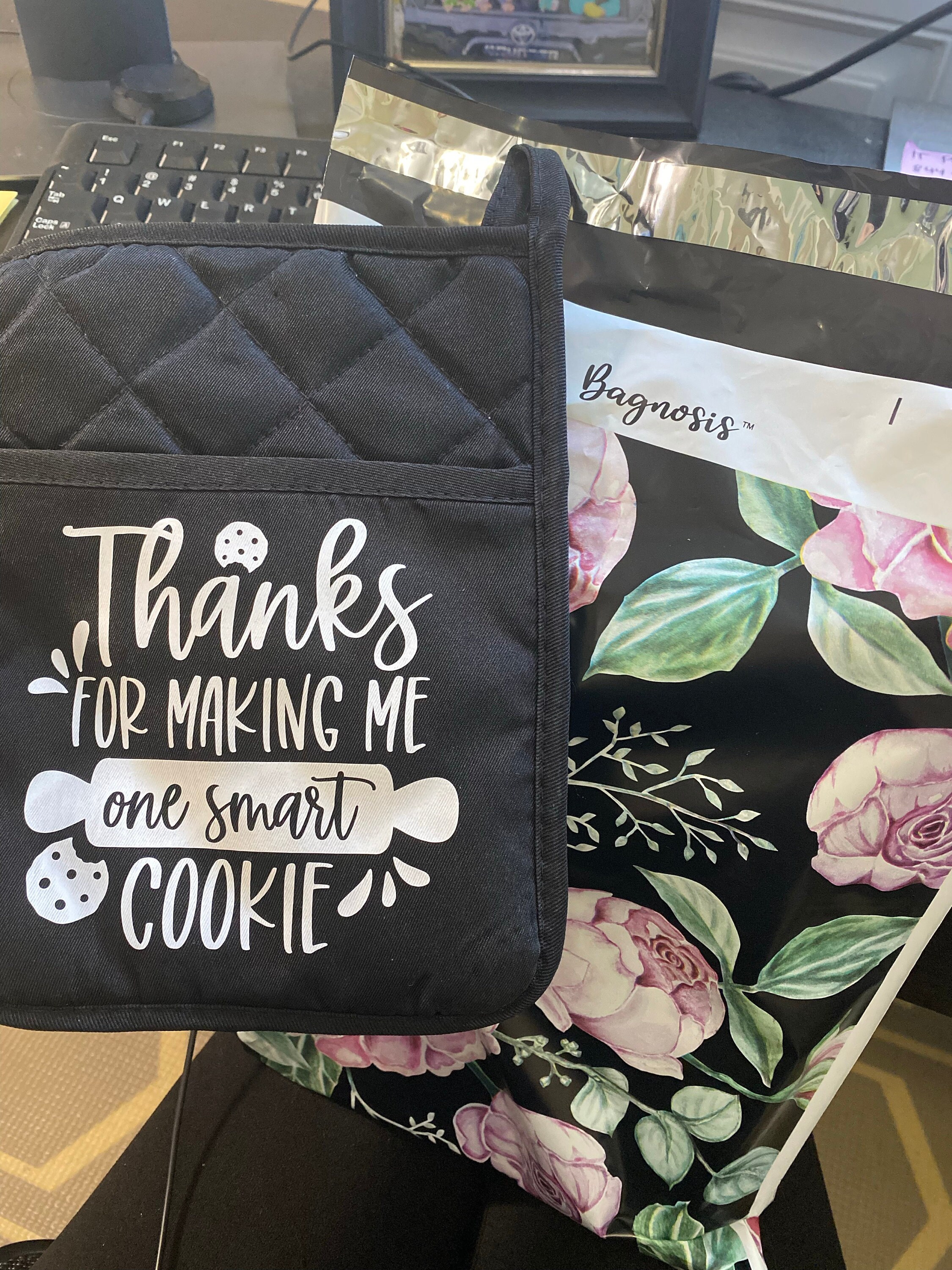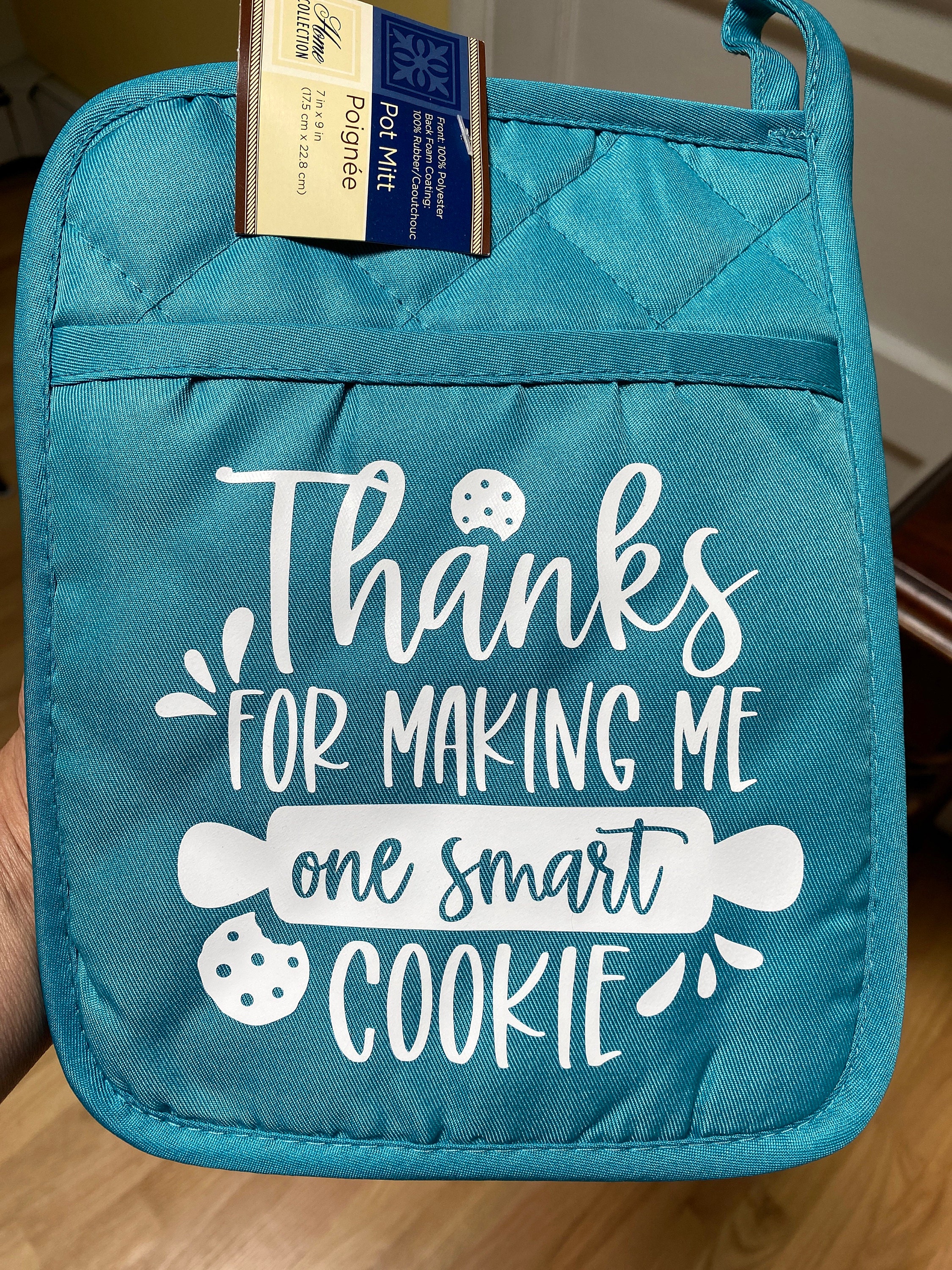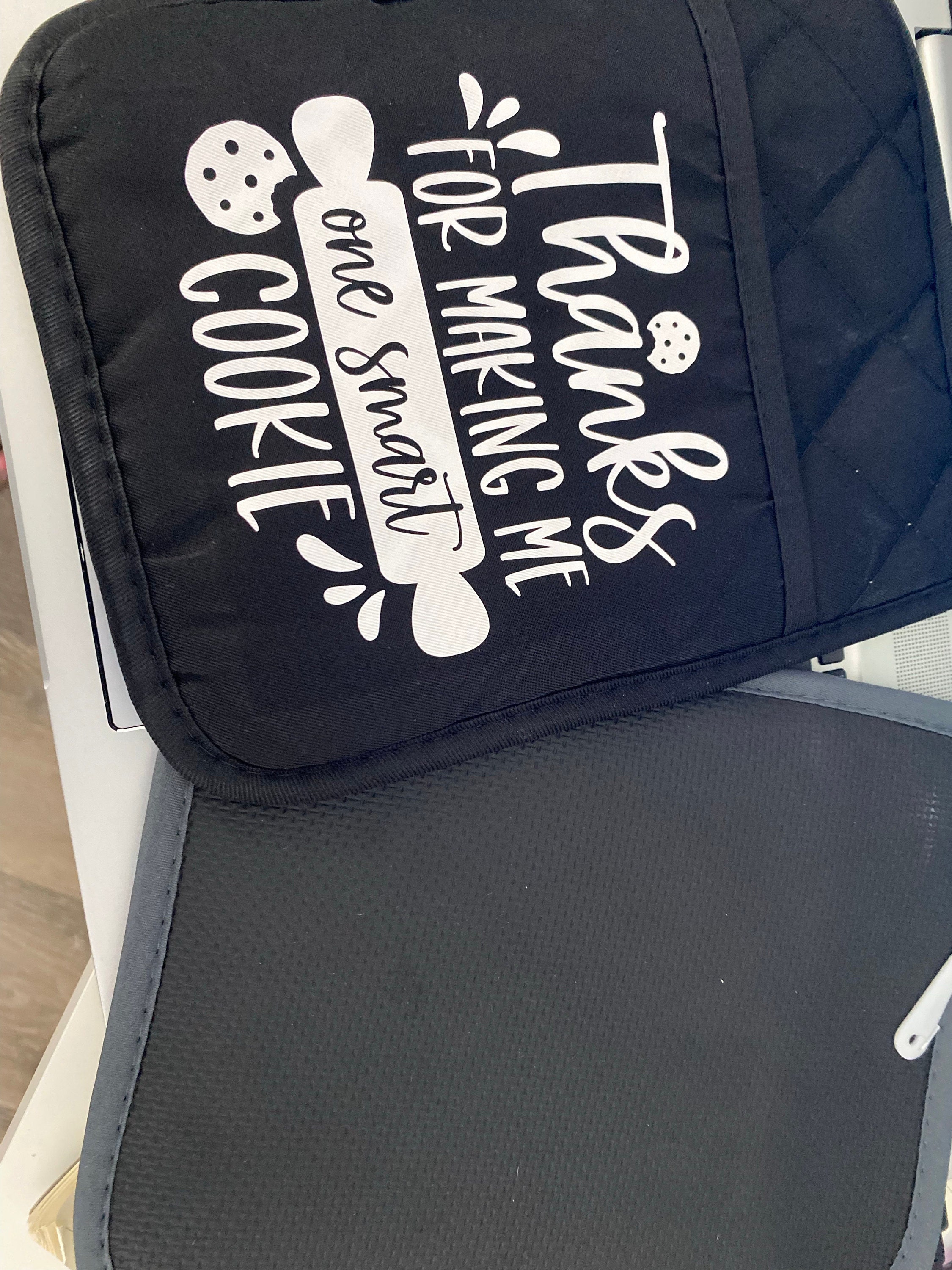 This is a perfect gift to say Thank You to all the hard working teachers or daycare workers. Potholder is made of polyester with a rubber backing for gripping hot pots and pans. Measurement size 7x9. Each pot holder has a pocket that is the perfect size to hold a sweet gift such as baked goods, cookie mix, baking utensils, etc.